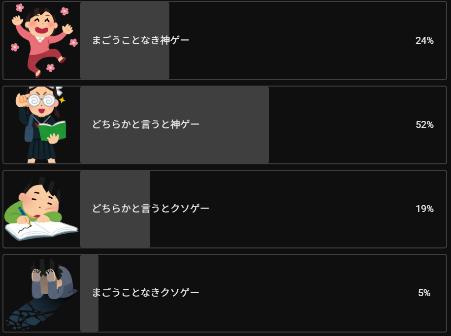 視聴者アンケート結果:世間の評価は「【神ゲーorクソゲー】」なのか?