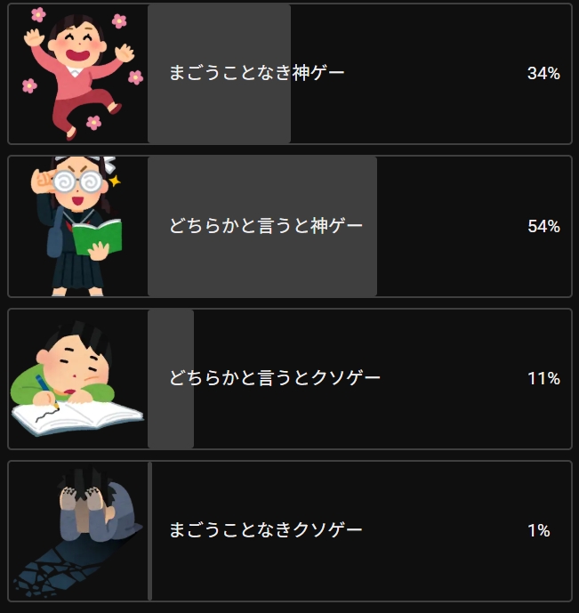 視聴者アンケート結果:世間の評価は「【神ゲーorクソゲー】」なのか?