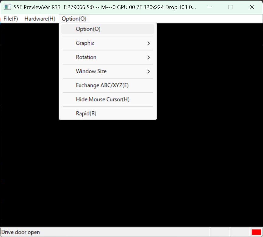 まずSSFの画面の「Option」メニューを開き、「Option」を選択します。