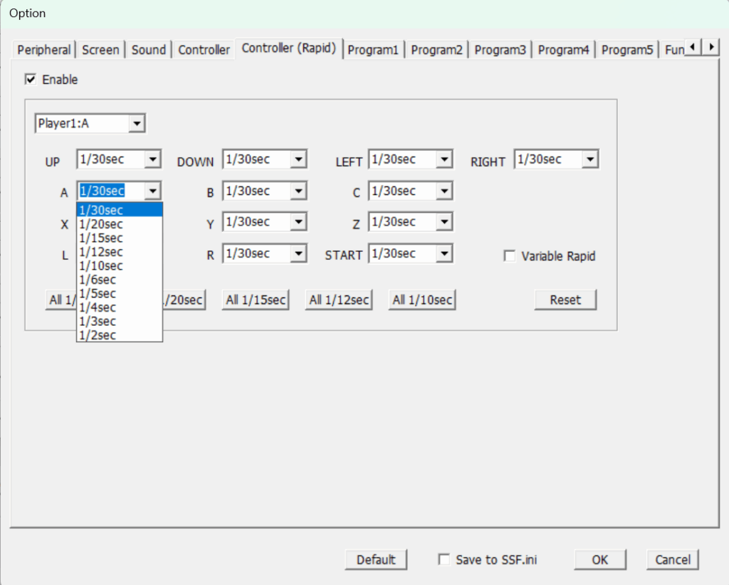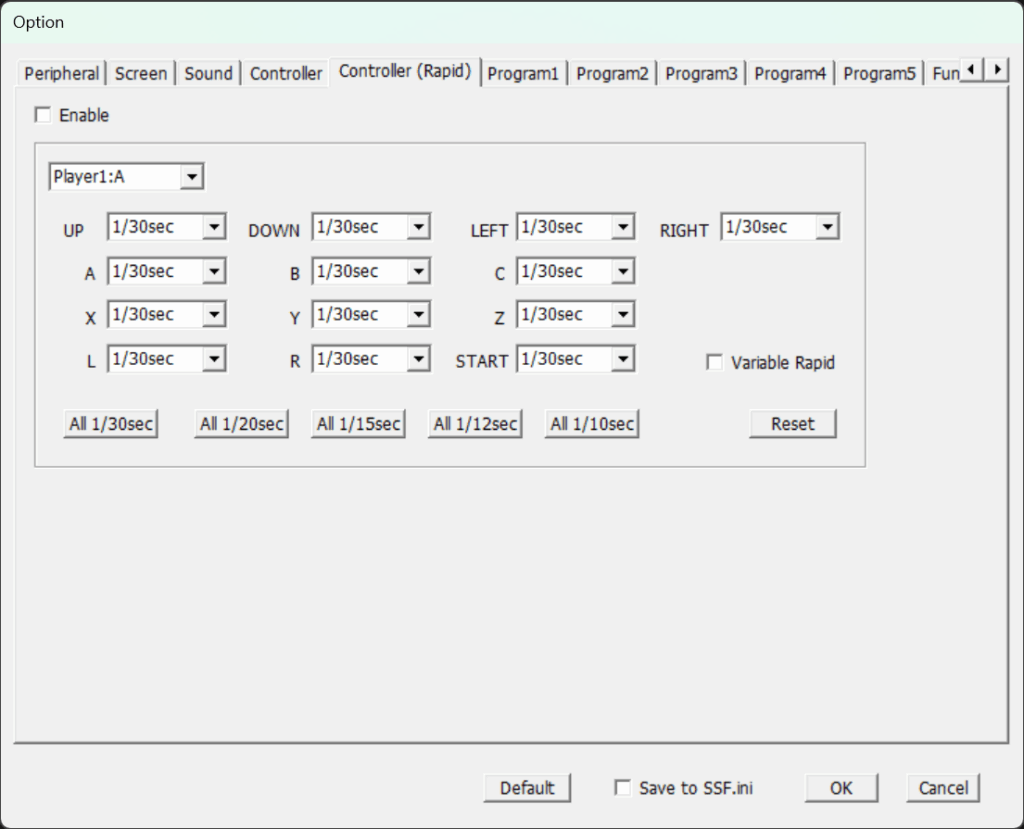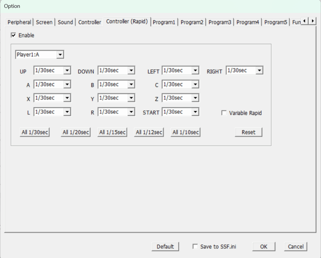 ハード的に連射対応コントローラーを使わなくてもSSFで連射する事が可能です。