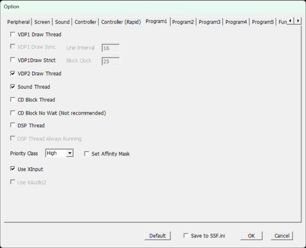 設定画面のProgram1タブにある「XInput」のチェックボックスを確認してください。