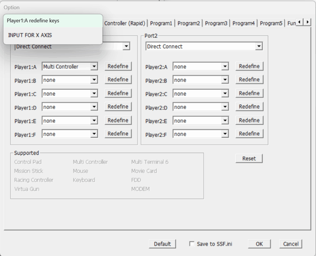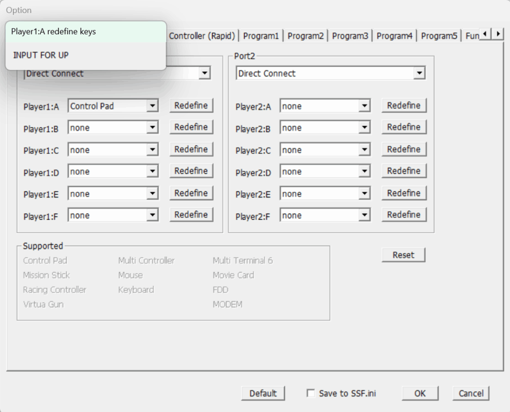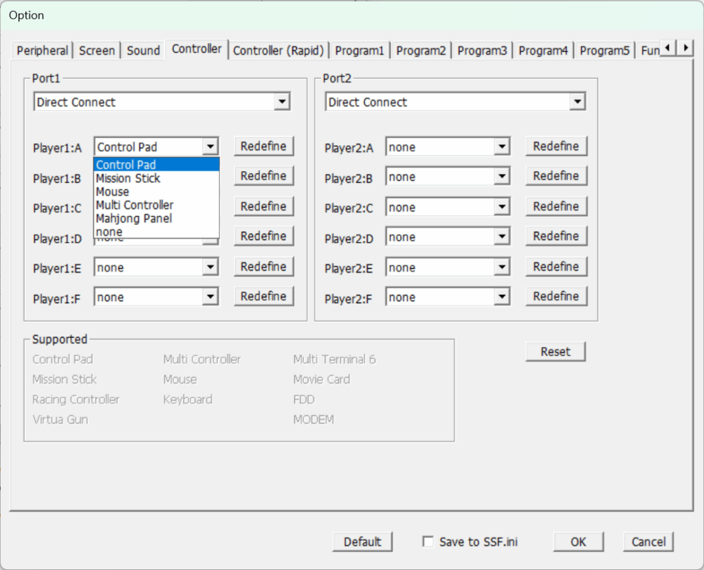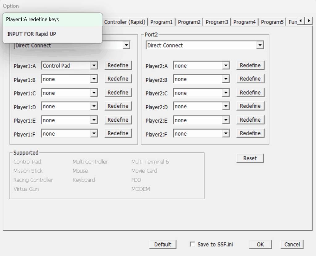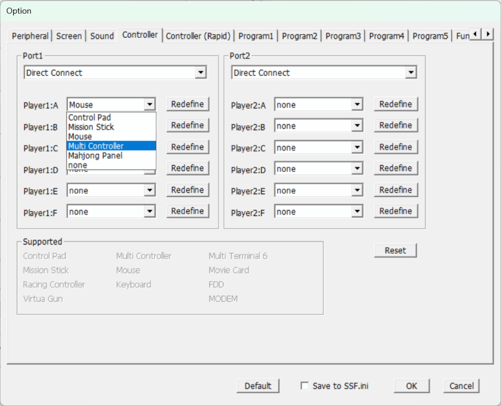 SSFを起動してOptionを表示させてください。「Controller」タブから設定します。