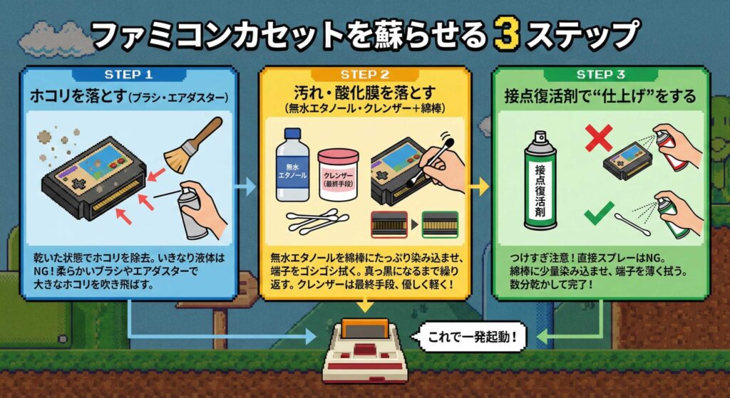 それでは、安全かつ確実にカセットを復活させる「正しい3ステップ」をご紹介します。