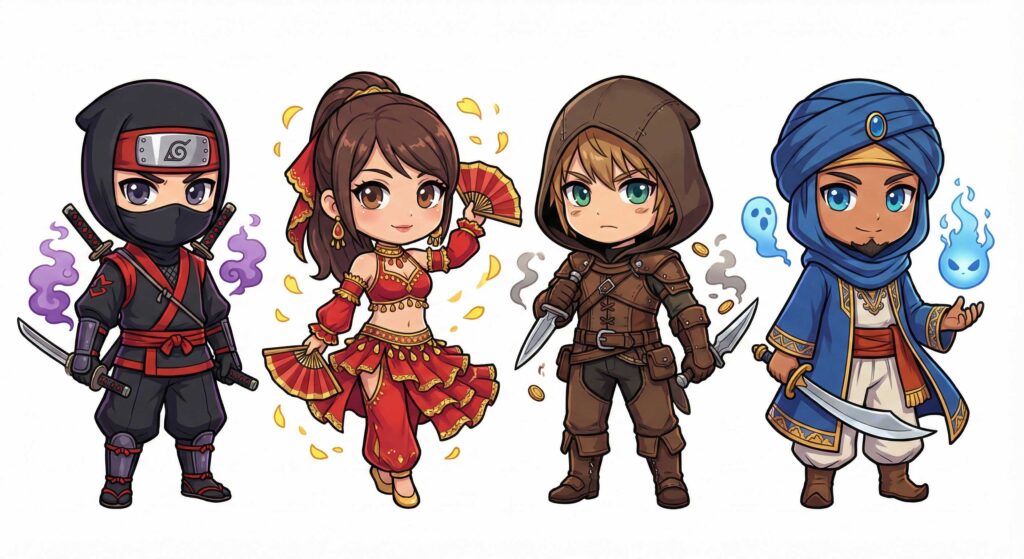 特徴:忍者と並ぶ二刀流ジョブ。ギフト(ジョブポイント)でランク5まで成長します。
