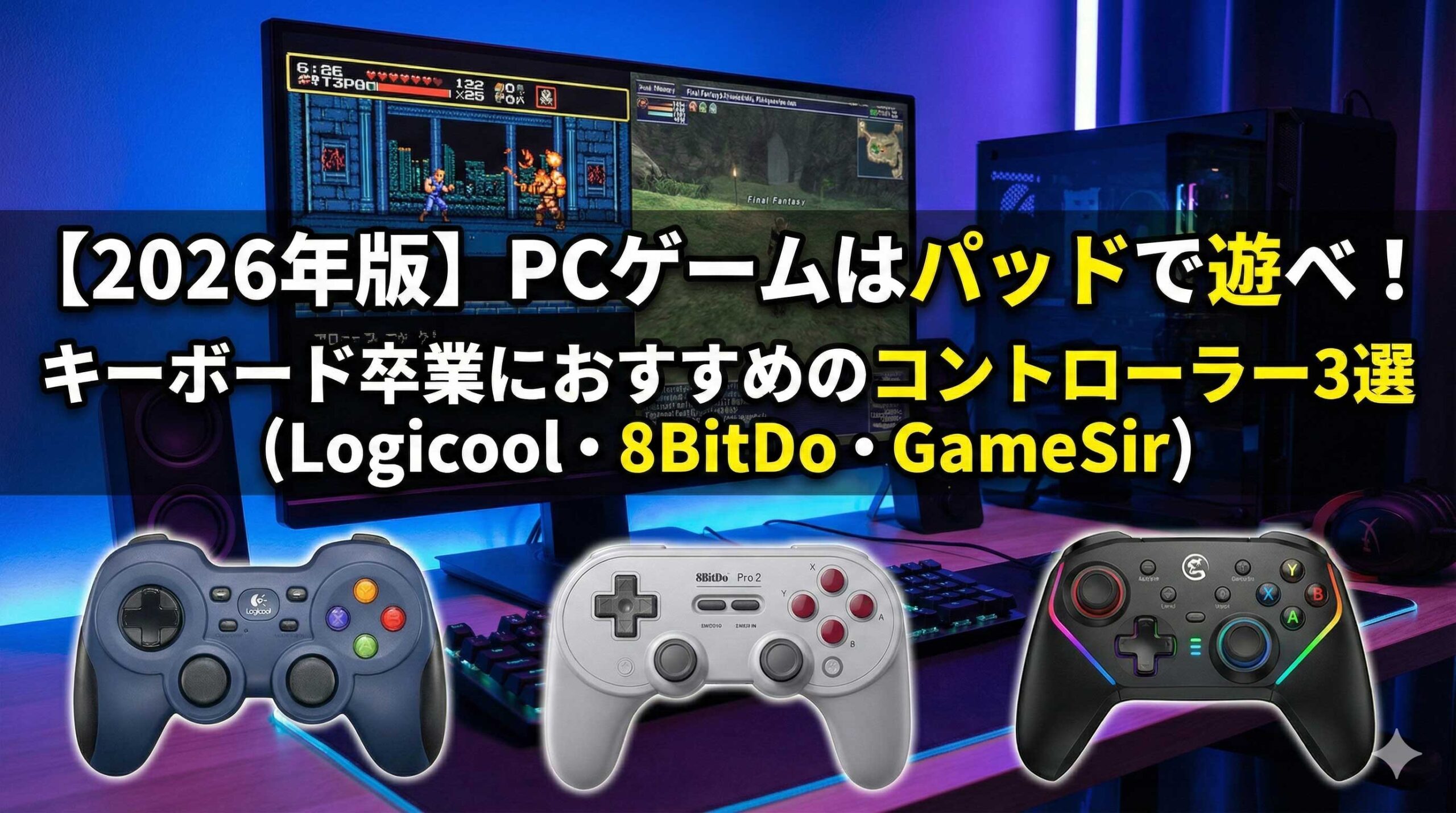 そこで今回は、「キーボード操作を卒業して、劇的に快適さを手に入れたい!」という方に向けて、私が実際に使って良かったPC用ゲームパッド(コントローラー)を3つ、タイプ別にご紹介します。