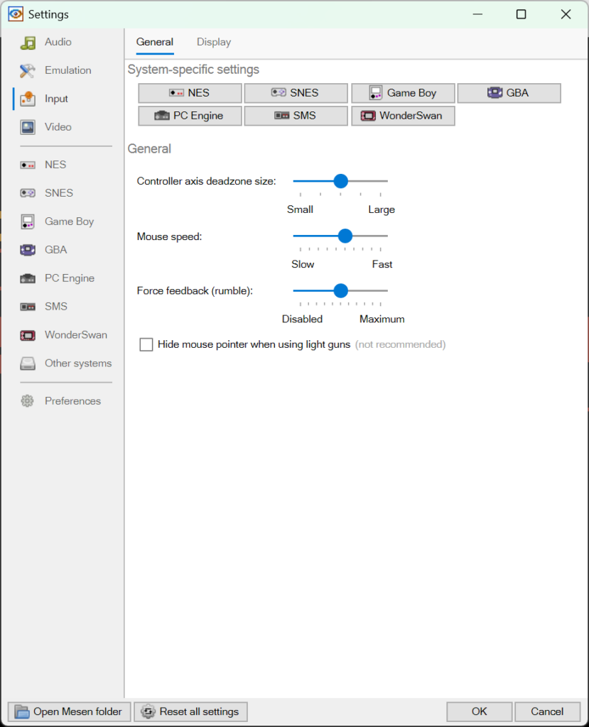 Mesenのメニューから「Settings」>「Input」を開いてください。