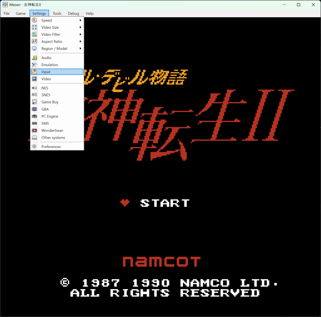 現在主流の最新版Mesen(Mesen 2)はメニューが英語です。以下の手順で進めてください。